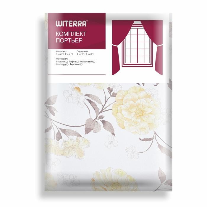 Штора портьерная блэкаут Японский пион 135×260 см, жёлтый, пэ 100%