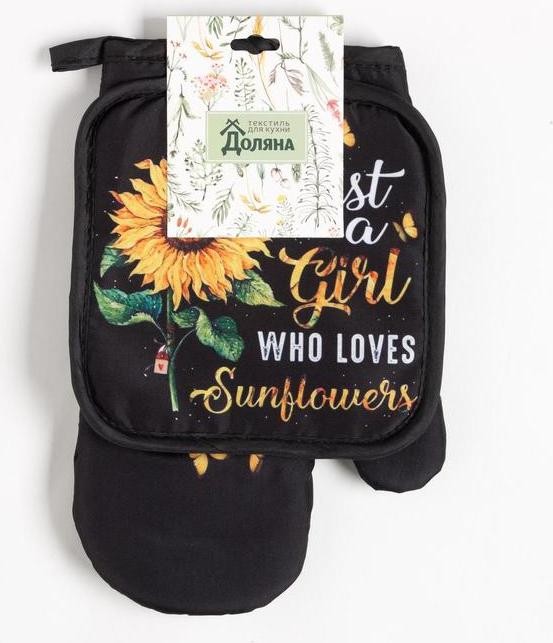 Кухонный набор Доляна Sunflowers, прихватка 17*17 см, рукавица 26*16 см,100% п/э