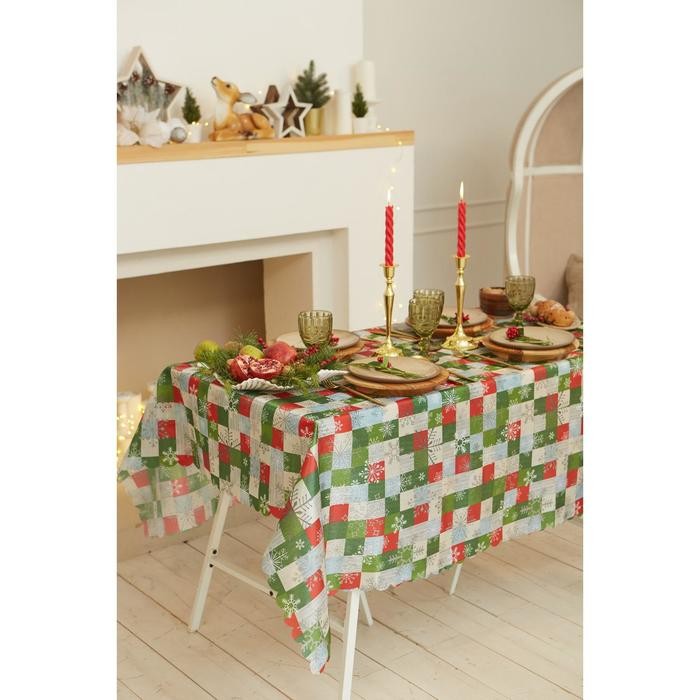 Скатерть Доляна «Новый год: Новогодняя мозаика» 110*145 +/- 2 см, 100% п/э
