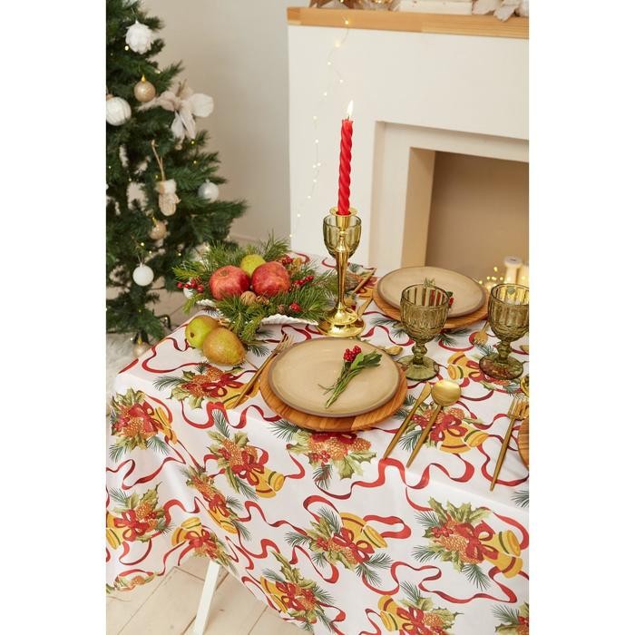 Скатерть Доляна «Новый год: Новогодние колокольчики» 145*300 +/- 2 см, 100% п/э