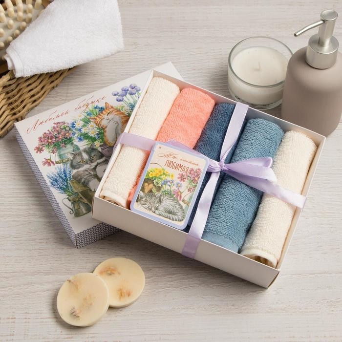 Набор махровых салфеток «Любимой бабушке» 30×30 см -5шт, 100% хл, 340гр/м2