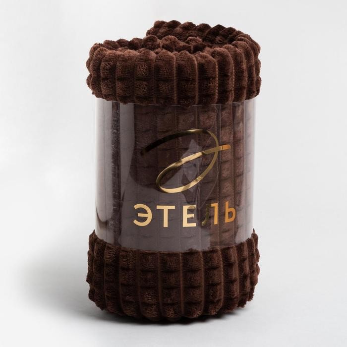 Плед Этель «Клетка» 180*200 см, цв.коричневый, корал-флис, 240гр/м2, 100% полиэстер