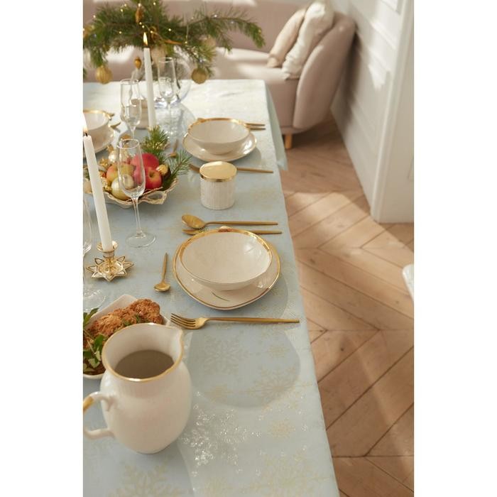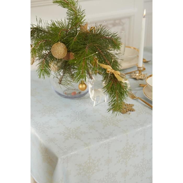 Скатерть Этель «Новый год: Снежинки» цвет голубой, 142*220 +/-3 см, 115 ±10 гр, 100% п/э