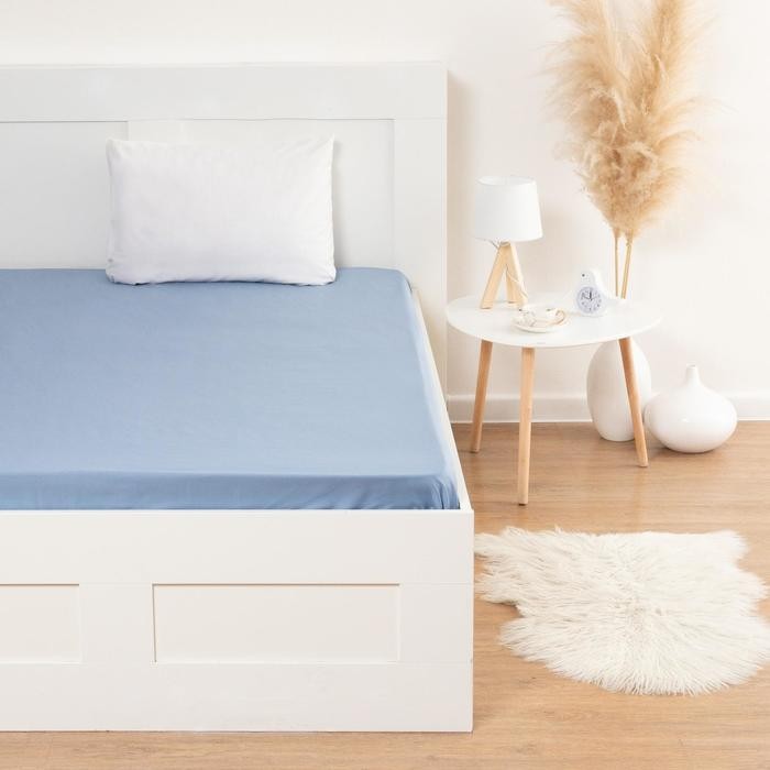 Простыня на резинке Этель 160*200*25 см, цв. синий, 100% хлопок, мако-сатин, 128 г/м²