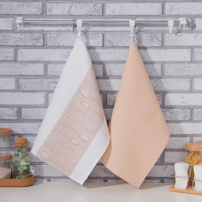 Набор полотенец «Этель» Приборы 40х60см- 2шт.,цв.бежевый, вафля, 200г/м2, 100% хл