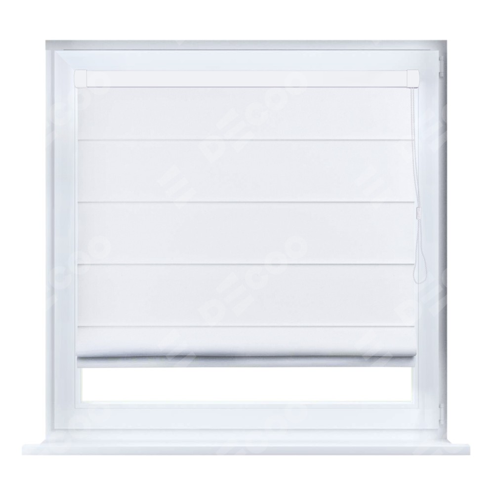 Классическая римская штора представляет собой полотно прикрепленное к карнизу, с обратной стороны полотна вшиты планки. С их помощь при сборе шторы образуются красивые горизонтальные складки.