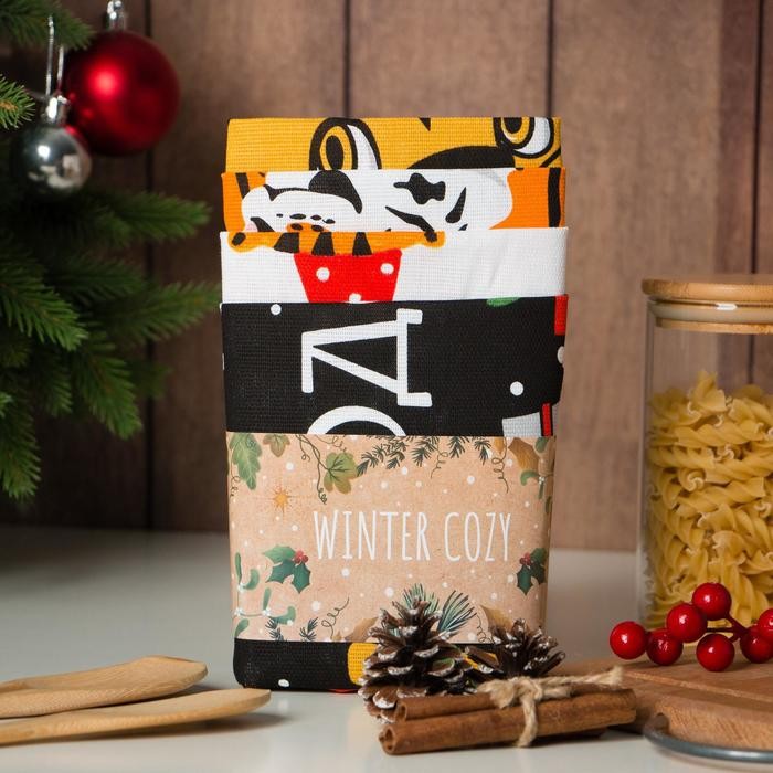 Набор кухонных полотенец Доляна «Любимый праздник» 35×60 см-4шт., 100% хлопок, 160 г/м2