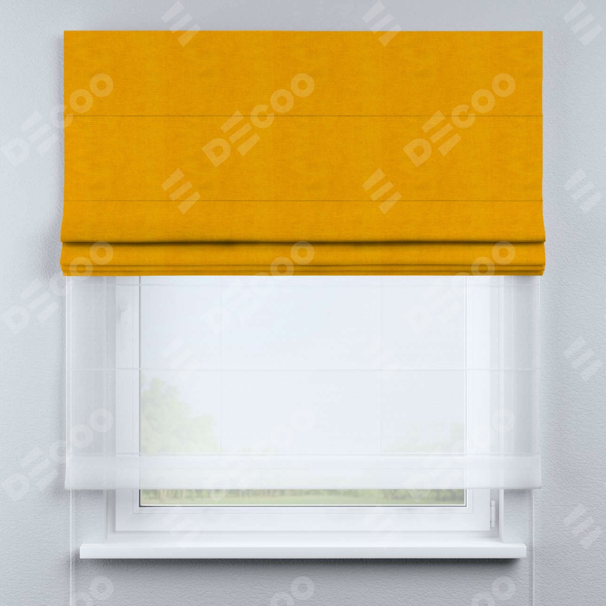 Римская штора «Кортин» двойная, вельвет желтый