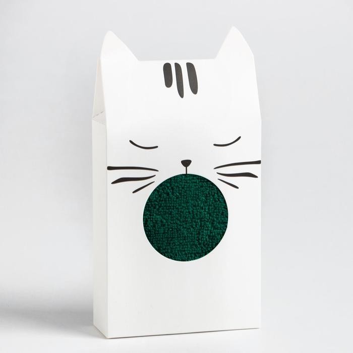 Полотенце подарочное Экономь и Я «Котик» 30*60 см, изумрудный, 100% хл, 320 г/м2
