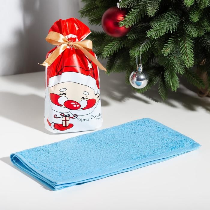 Полотенце подарочное Экономь и Я «Дед Мороз» 30×60 см, цвет голубой