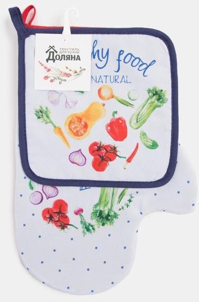 Набор кухонный «Натур продукт» варежка-прихватка 20х28см, прихватка 17х17см, 35% х/л,65% п/э