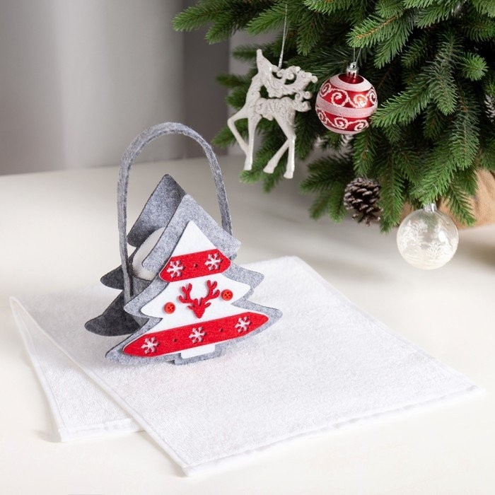 Полотенце в корзинке Экономь и Я «Елочка» 30*60 см, цв. белый, 100%хл, 320 г/м2