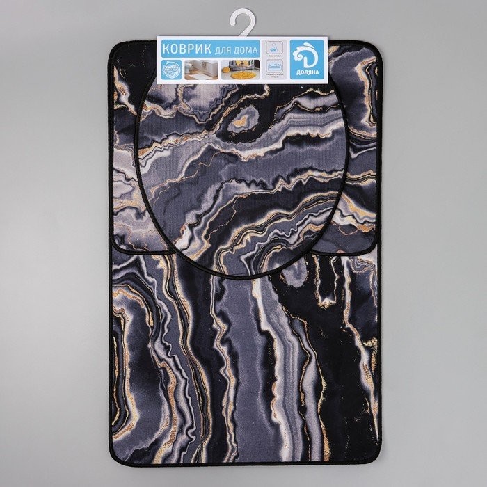 Набор ковриков для ванны и туалета Доляна «Мрамор», 3 шт: 50×80, 50×40, 40×38 см
