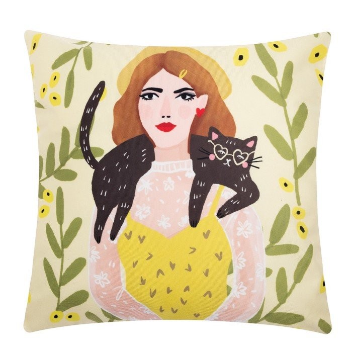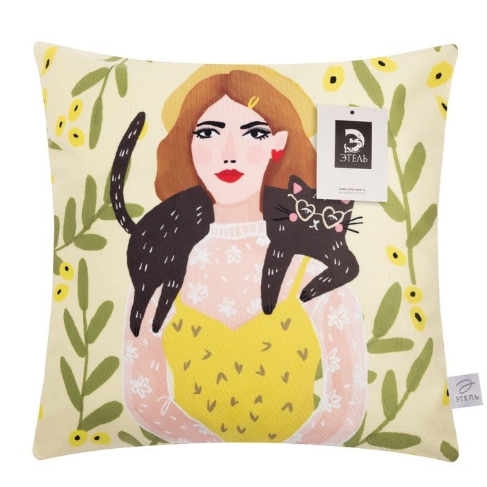 Наволочка Этель «Девушка с котом» 40×40 см, 100% п/э, велюр