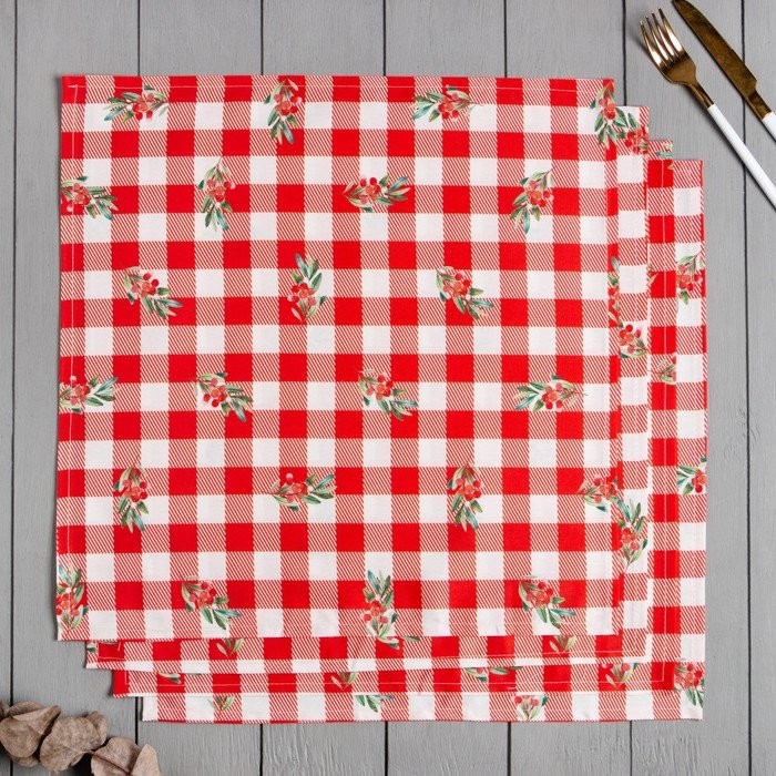 Набор салфеток Этель «Red flowers» 46×46 см — 4шт., 100%хл, саржа 190 г/м2