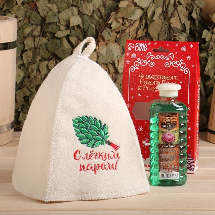 Подарочный набор Новый год Шапка «С легким паром» + Шампунь Репейник