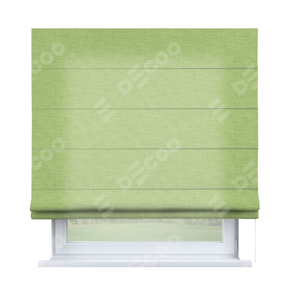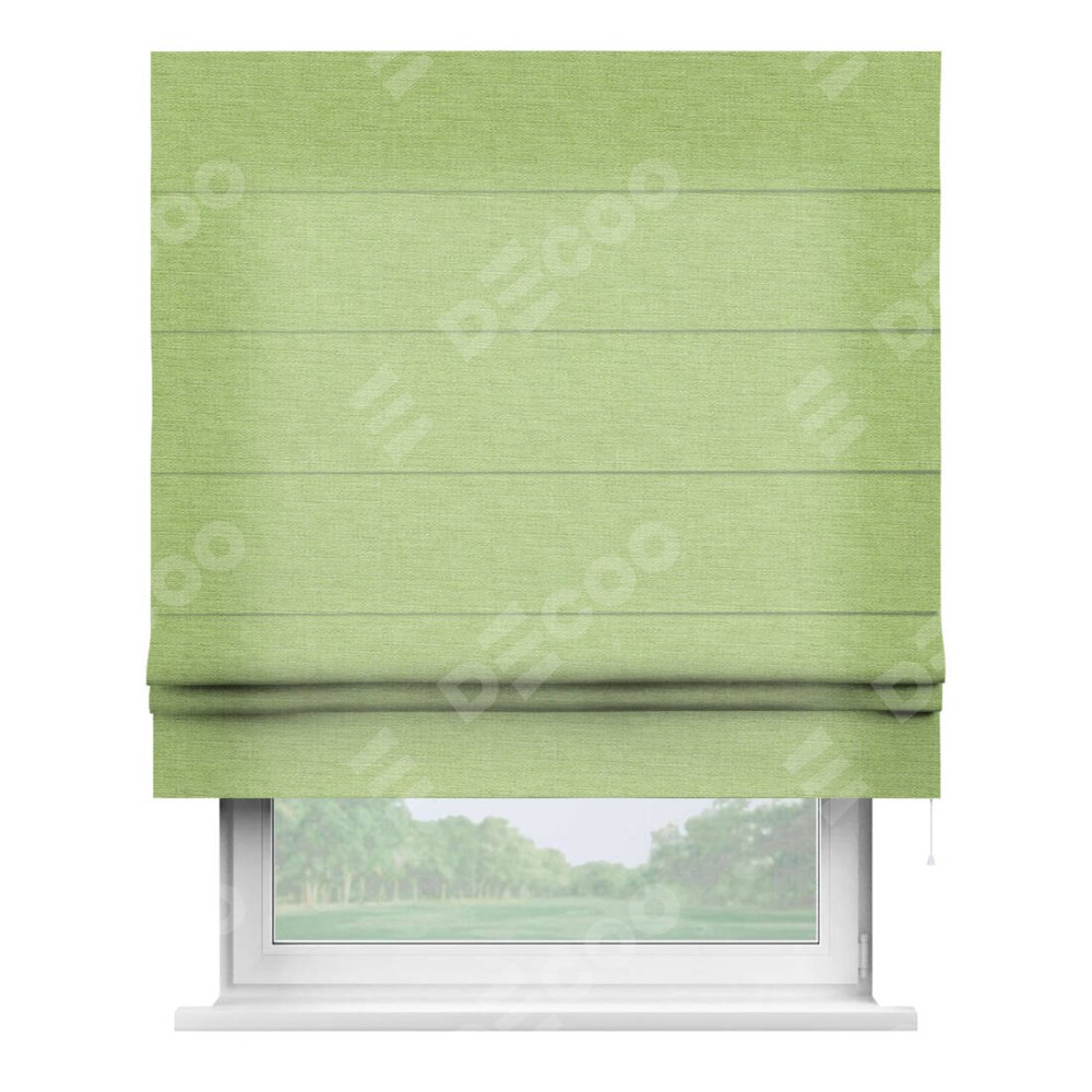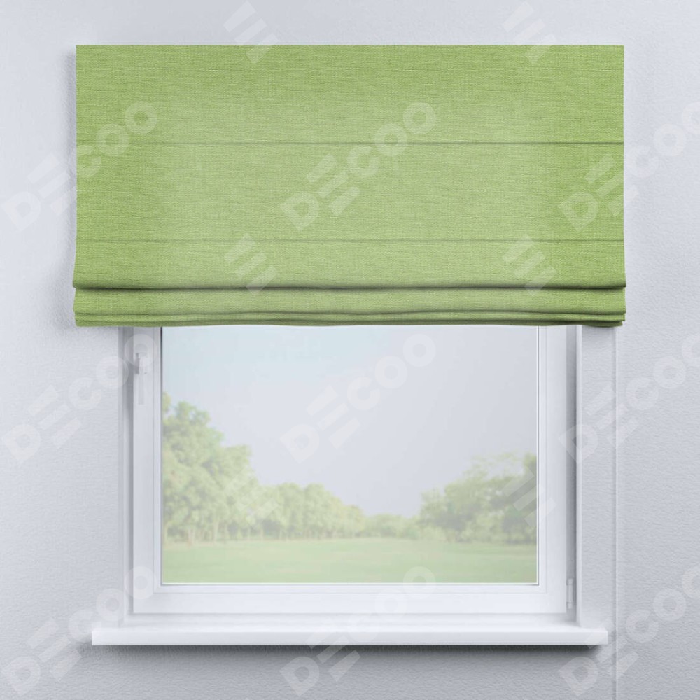 Римская штора производителя «Cortin», используется для проёма, пошита из ткани лён зелёный, артикул ткани 85906. Имеет универсальный механизм и подходит для монтажа: на потолок, на стену и в нишу.