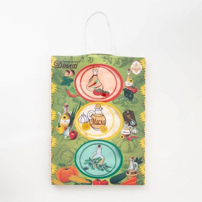 Набор кухонных полотенец в коробке 50*60 см-3 шт, Масло, вафля, хл