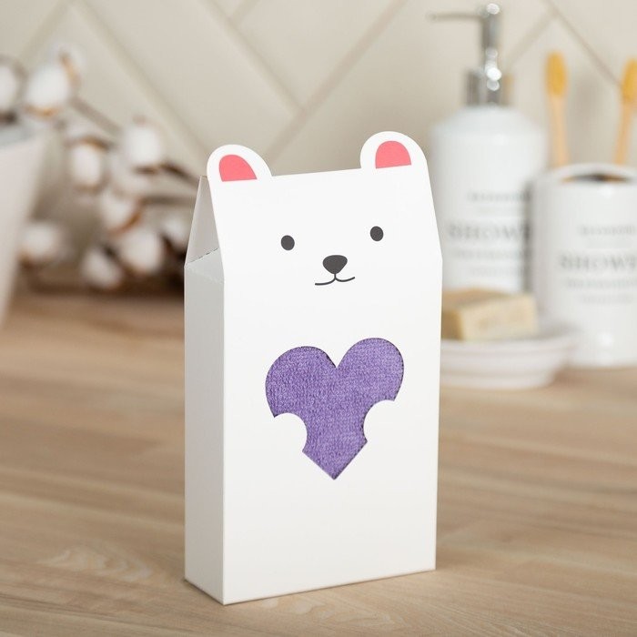 Полотенце подарочное Экономь и Я «Мишка» 30*60 см, цв.сиреневый, 100% хл, 320 г/м2