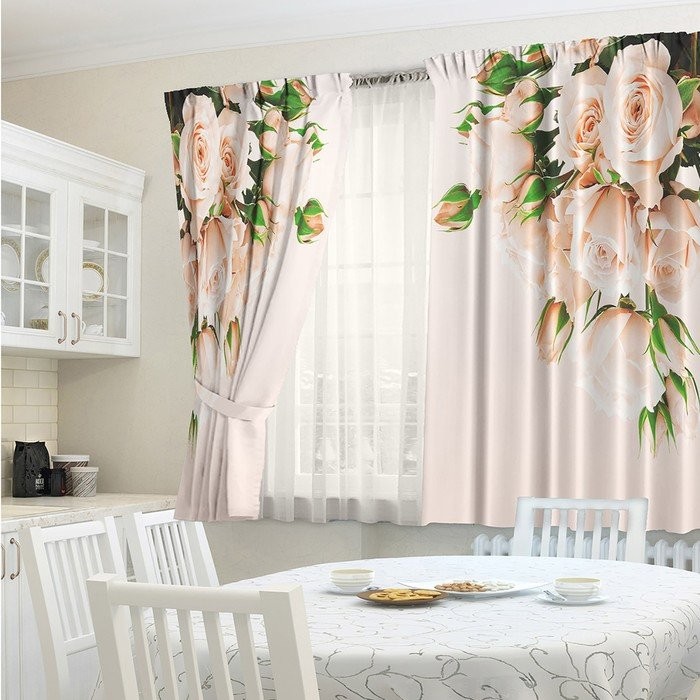 Фотошторы для кухни Притяжение бежевый 147х160см-2шт, габардин, пэ 100%, 145г/м3
