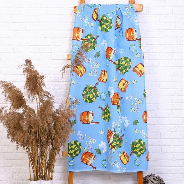 Полотенце «Баня» 80×150 см, голубой, 160 гр/м, вафля, хлопок 100% (в пакете)