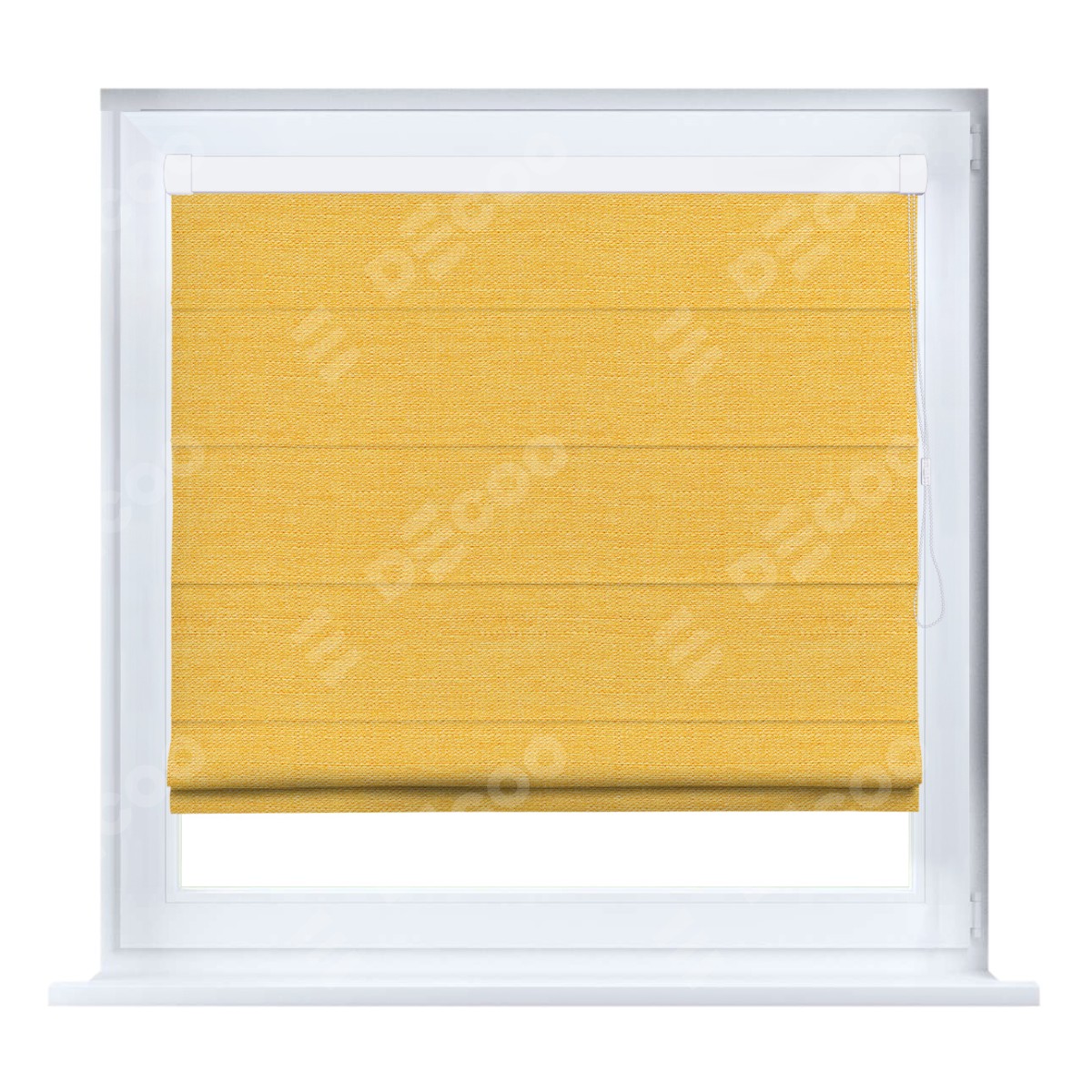 Римская штора производителя «Cortin», устанавливается на створку окна, пошита из ткани лён желтый, артикул 63738. Штора шьётся по индивидуальным размерам, для данного типа римской шторы возможная ширина от 35 до 150 см., высота до 250 см.