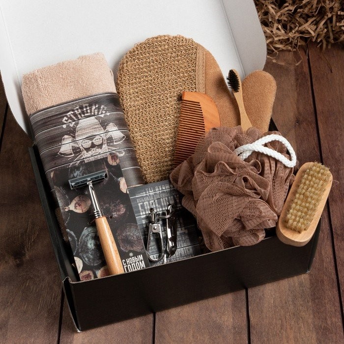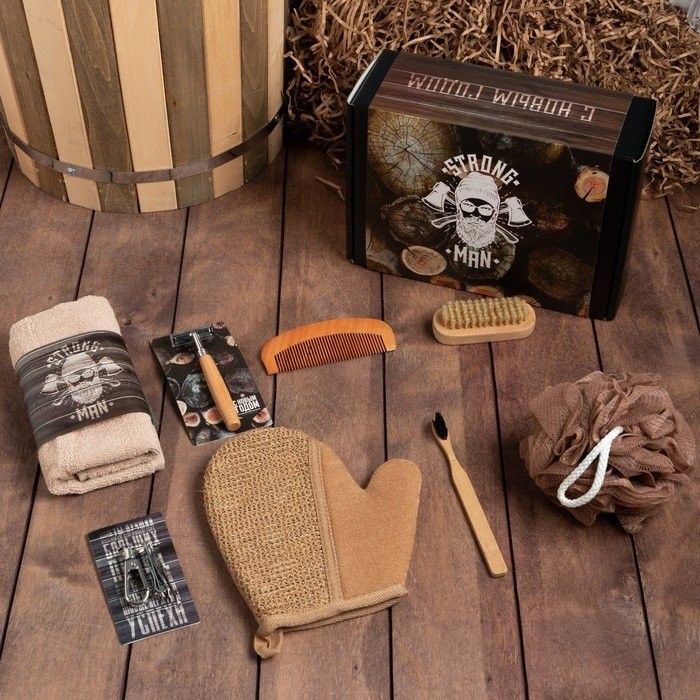 Подарочный набор новогодний Этель Strong man полотенце и аксессуары (7 предм)