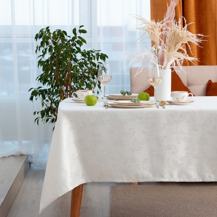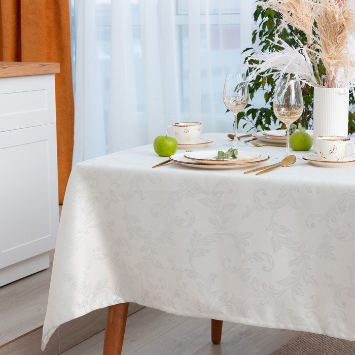Скатерть Этель «White patterns» цвет белый, 142*220 +/-3 см, 115 ±10 гр,100% п/э