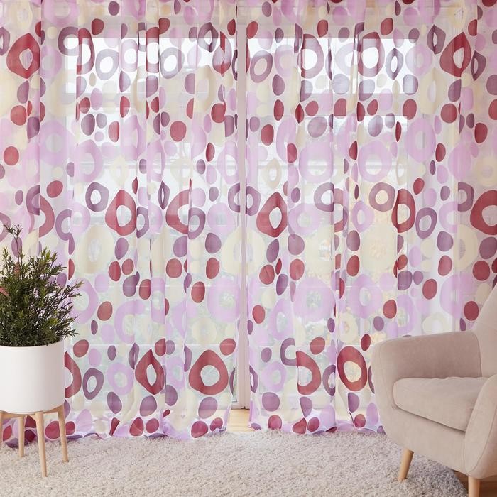 Тюль «Этель"Калейдоскоп (лиловый) б/ утяжелителя, ширина 260 см, высота 250 см