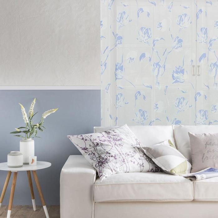 Тюль «Этель"Цветочная иллюзия (голубой) б/ утяжелителя, ширина 260 см, высота 250 см