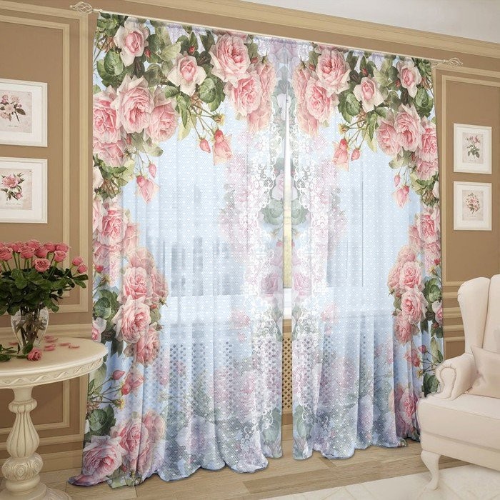 | Тип тюли: | Готовый, С рисунком, С цветами |