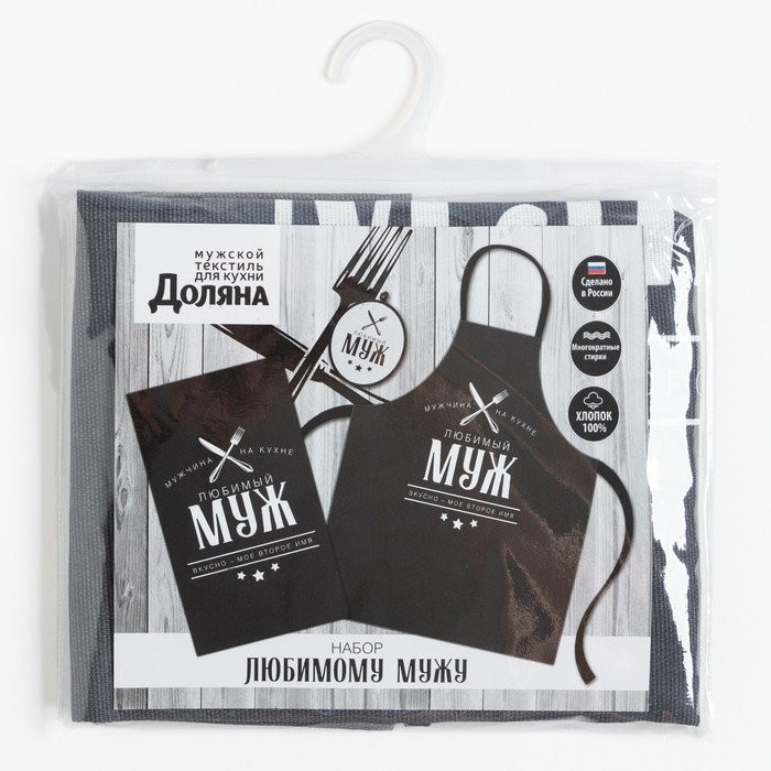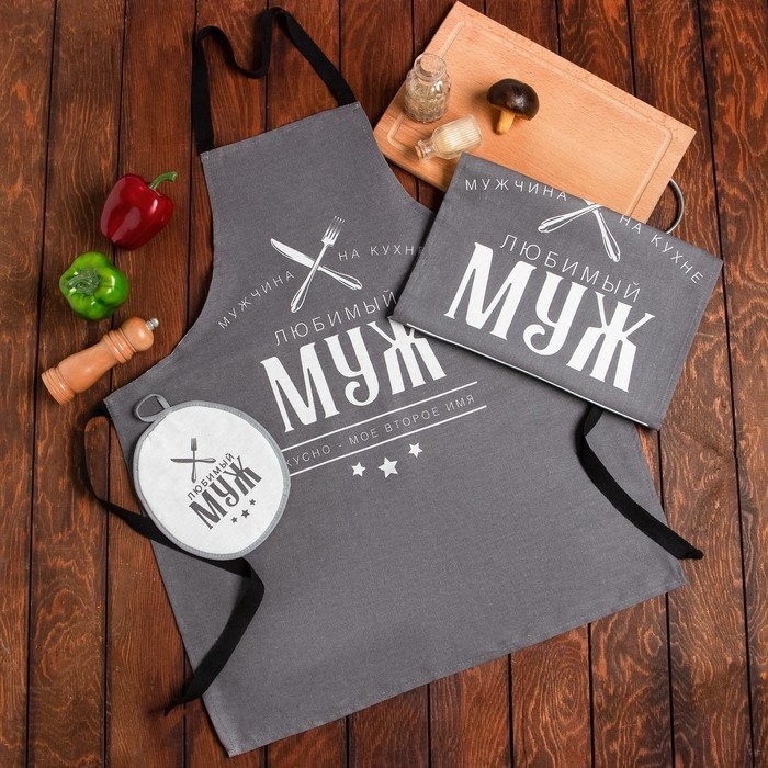 Кухонный набор (3 предмета) «Любимый муж», фартук 70×60 см, прихватка 20×20 см, полотенце 35х60см