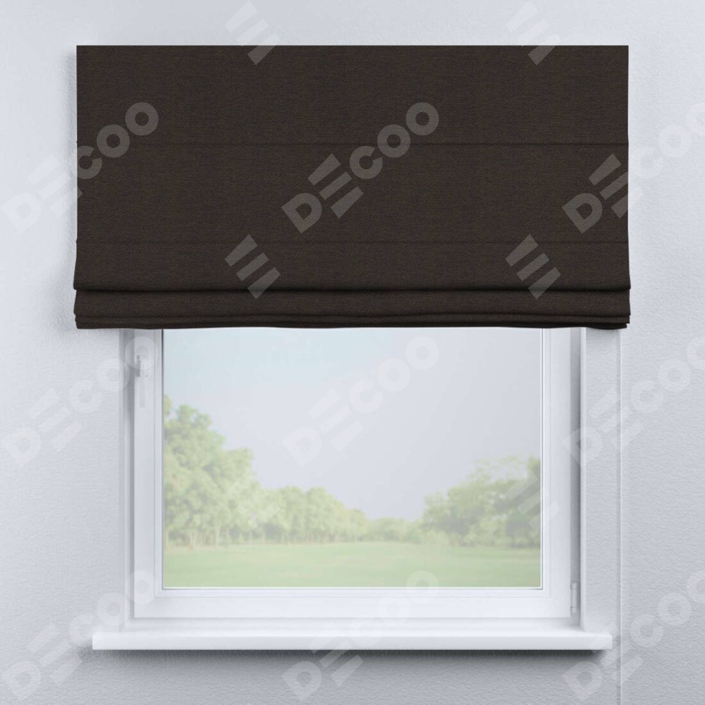 Римская штора производителя «Cortin», используется для проёма, пошита из ткани лён димаут венге, артикул ткани 85410. Имеет универсальный механизм и подходит для монтажа: на потолок, на стену и в нишу.