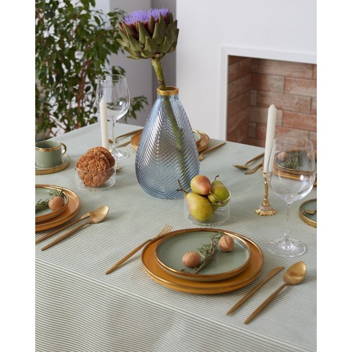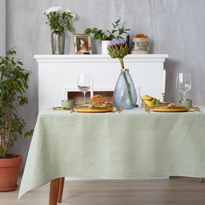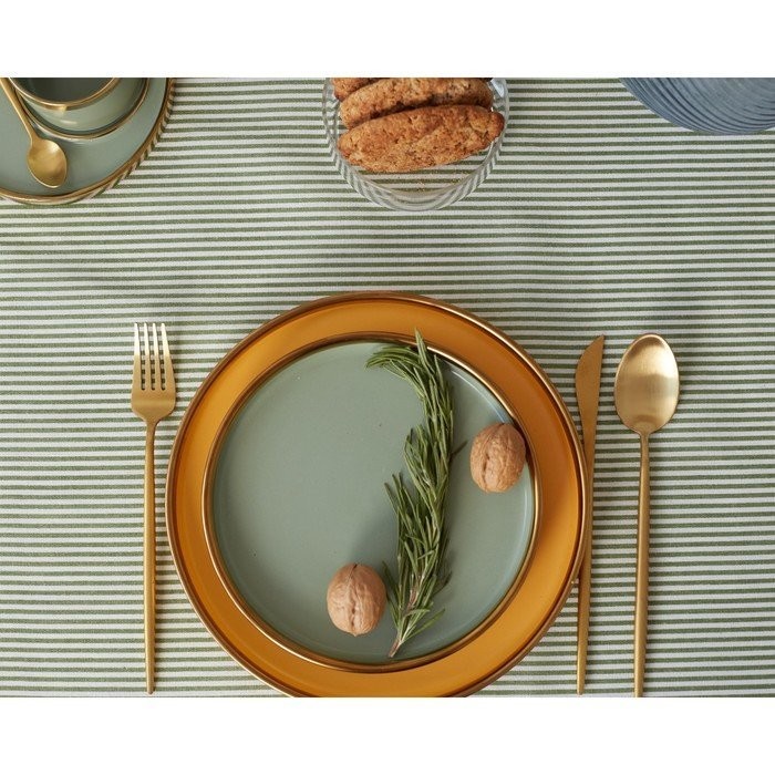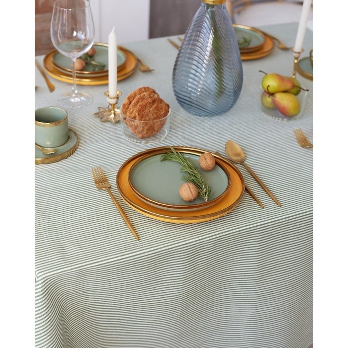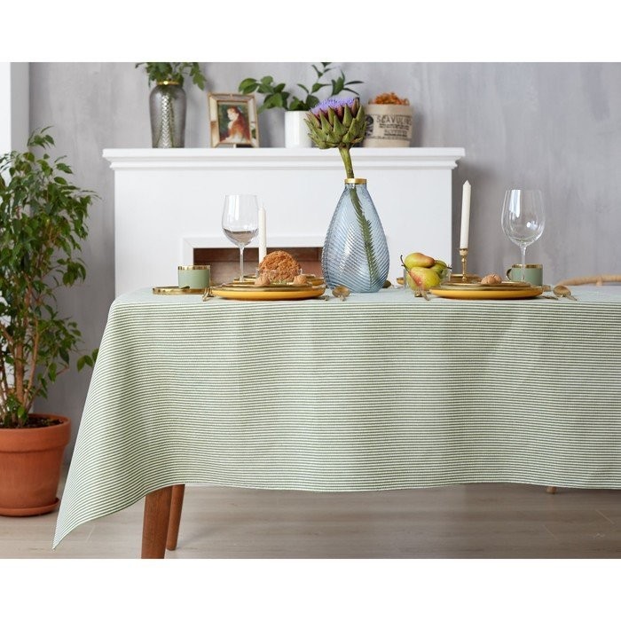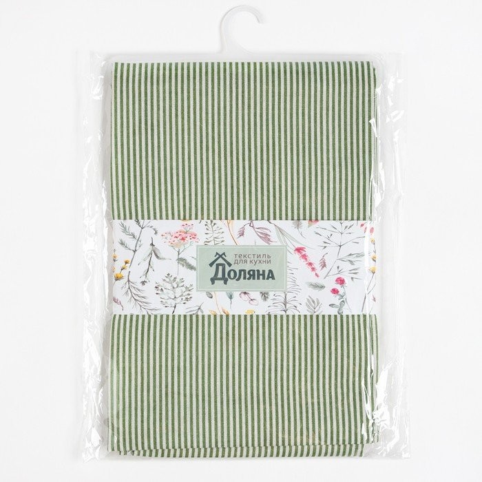 Скатерть Доляна 145х145см, Зеленая полоска, 100%пэ, рогожка 200 гр/м