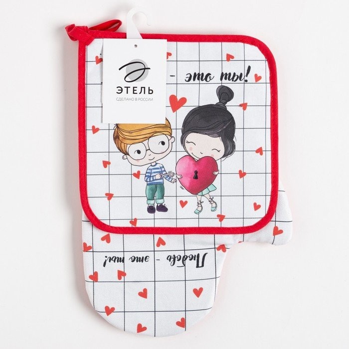 Набор Кухонный «Любовь — это ты», варежка-прихватка 20х28см, прихватка 19х19см, 100% хл