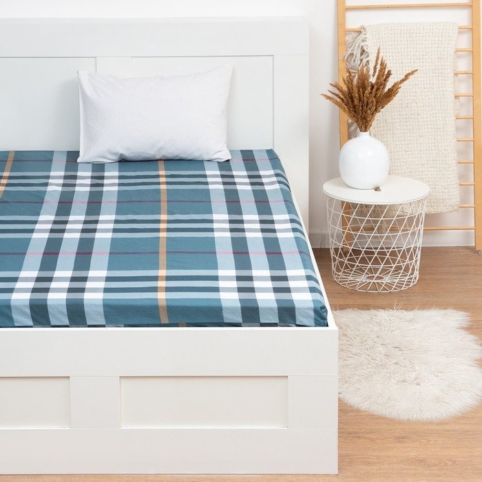Простыня на резинке LoveLife 160*200*25см, «Клетка», 100% хлопок, сатин, 125г/м²