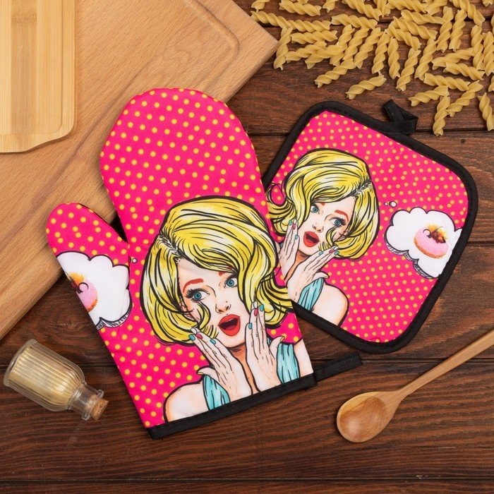 Кухонный набор (2 предмета) Этель LoveLife «Мечтательница», прихватка 17×17 см, варежка 26×16 см, 100% п/э
