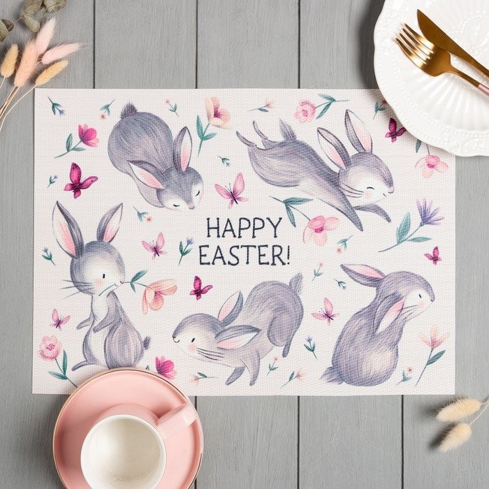 Салфетка на стол Доляна «Пасха» (серые зайчики) ПВХ 40×29 см