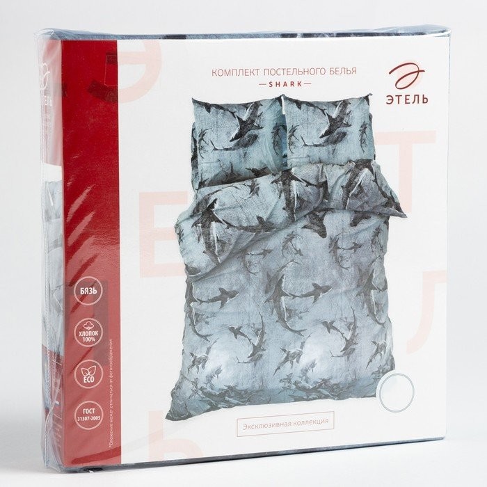 Постельное белье Этель 1.5 сп Shark 143*215 см,150*214 см, 70*70 см 2 шт, бязь