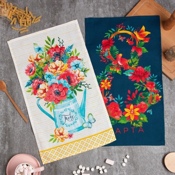 Набор кухонных полотенец Доляна «8 Марта», 35х60см-2шт, 100% хл