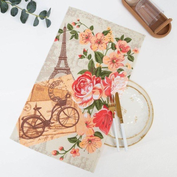 Полотенце 35×60 см, Почтовые марки, песочный, вафля, 160 гр/м2, хлопок 100%