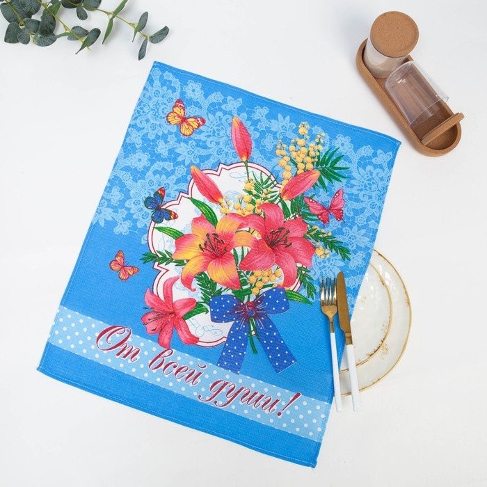 Полотенце 45×60 см, Лилия, голубой, вафля, 160 гр/м2, хлопок 100%
