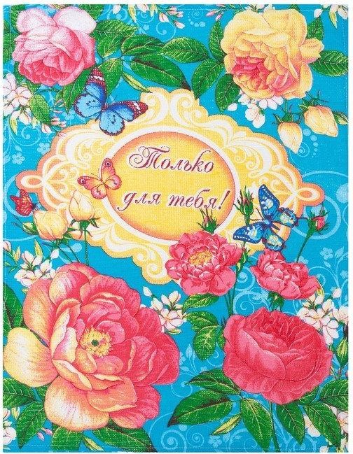 Полотенце в коробке 45×60 см, Английская роза, бирюза, вафля, 160 гр/м2, хлопок 100%
