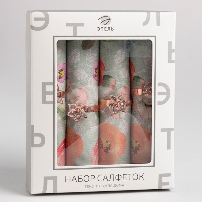 Набор салфеток с декорат. кольцами «Цветочный узор» 46х46см — 4 шт, 100% хл, саржа 190гр/м2