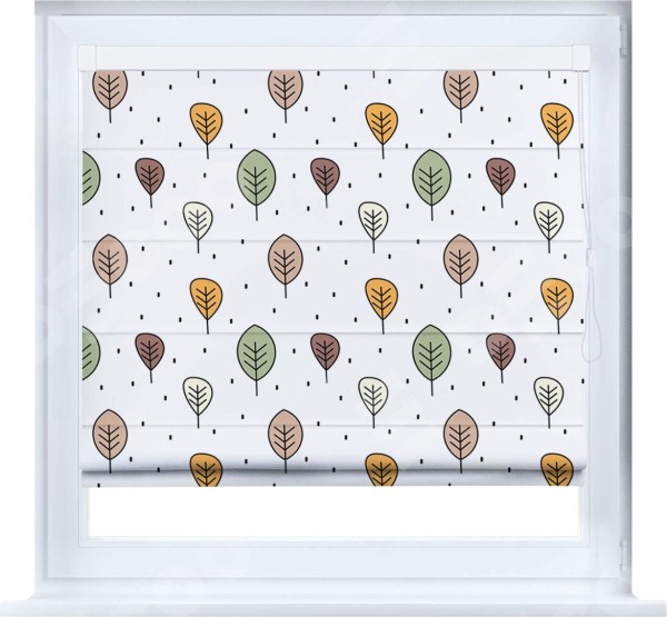 Римская штора производителя «Cortin», устанавливается на створку окна, пошита из ткани блэкаут с нанесением сублимационной печати «Простые деревья». Штора шьётся по индивидуальным размерам, для данного типа римской шторы возможная ширина от 35 до 150 см., высота до 250 см.