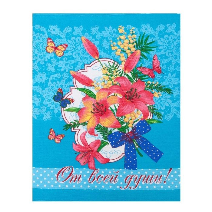 Полотенце 45×60 см, Лилия, бирюза, вафля, 160 гр/м2, хлопок 100%