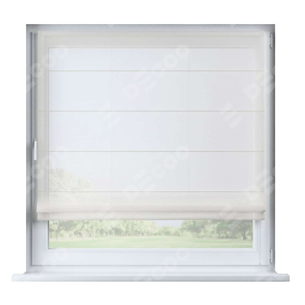 Римская штора производителя «Cortin», устанавливается на створку окна, пошита из ткани тюль шампань, артикул V-02. Штора шьётся по индивидуальным размерам, для данного типа римской шторы возможная ширина от 35 до 150 см., высота до 250 см.
