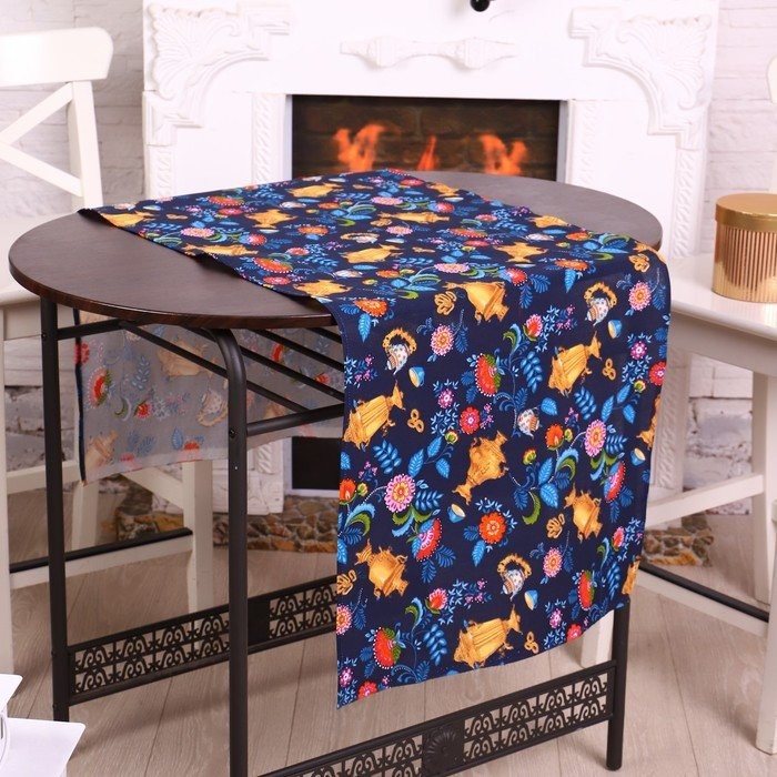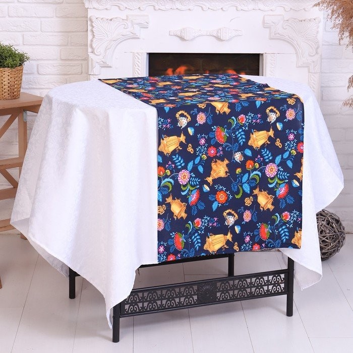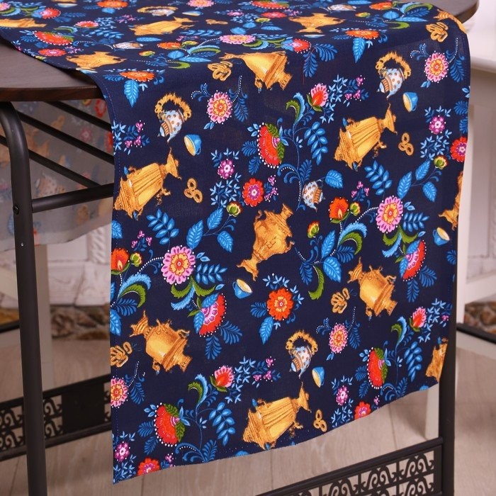 Дорожка-рушник 50×150 см «Самовары», синий, рогожка, хл 100%