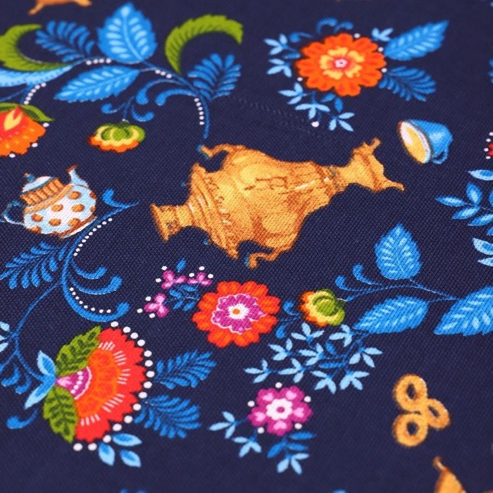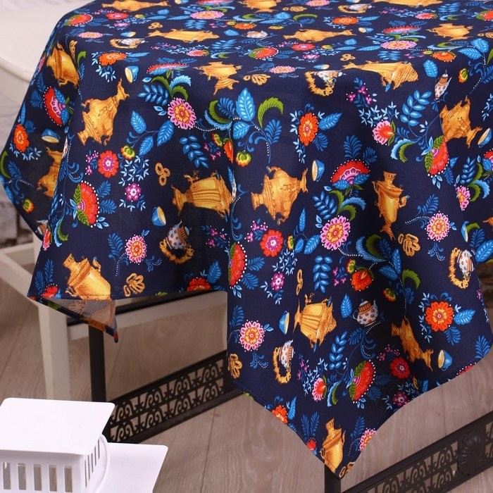 Скатерть 150×180 см Самовары, синий, хл 100%, рогожка