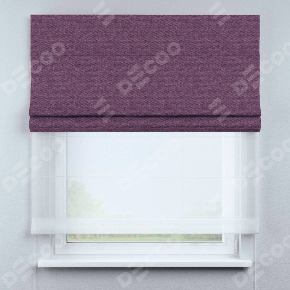 Римская штора день-ночь производителя «Cortin», используется для проёма, пошита из двух полотен, с лицевой стороны лён димаут брусника артикул 16, вторая ткань тюль (по стандарту комплектуется тюль белого цвета артикул V-01). Имеет универсальный механизм и подходит для монтажа: на потолок, на стену и в нишу.